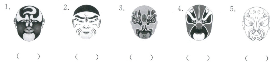 一、京剧脸谱作为中国传统文化标识之一,深受人们喜爱。听一听,为下列脸谱选择对应的颜色。只读两遍。(10 分)
