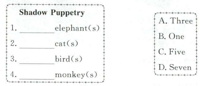 )Shadow Puppetry—______A. Animals