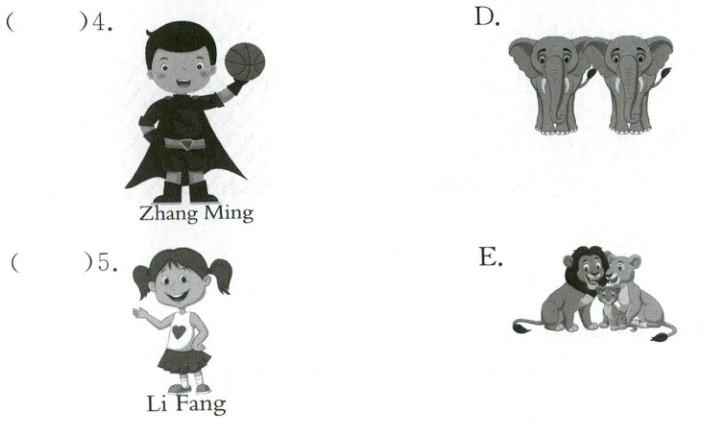 八、听一听,根据所听内容,给人物选择对应的图片。只读两遍。(10分)