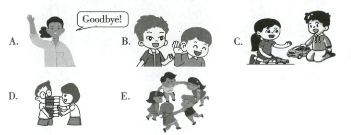 )5. Mike shares toys.任务二:阅读对话,选择正确的图片。(5分)