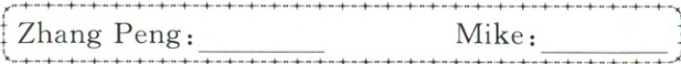 十、新学期新开始,认识新同学。根据 Mike 和 Zhang Peng 的对话,完成下面的任务。(10分)