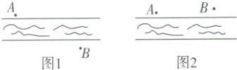 路边有一条河,小明从 $ A $ 点走到了 $ B $ 点。