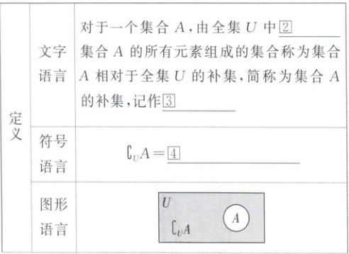 集合A的所有元素组成的集合称为集合A相对于全集U的补集,简称为集合A的补集,记作③∁_U A