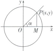如图,如果一个锐角$\alpha的终边与单位圆\odot O的交点是P(x,y)$,根据初中所学在直角三角形中正弦、余弦、正切的定义,你能否用点$P的坐标表示\sin\alpha$,$\cos\alpha$,$\tan\alpha$?