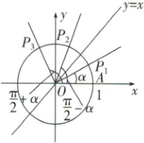 α与$\frac{\pi}{2}+\alpha$的终边垂直;点P₃的横坐标与点P₁的纵坐标互为相反数,P₃的纵坐标与点P₁的横坐标相等.