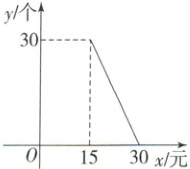 【解】(1)根据题图可设$y = kx + b(15 \leqslant x \leqslant 30)$,将$(15, 30)$和$(30, 0)$代入解得$k = -2$,$b = 60$,故$y = 60 - 2x(15 \leqslant x \leqslant 30)$,设日利润为$W$元,则$W = (60 - 2x)x - 10(60 - 2x) = -2x^2 + 80x - 600 = -2(x - 20)^2 + 200(15 \leqslant x \leqslant 30)$,所以当$x = 20$时,日利润最大。所以为了使这批削笔器的日利润最大,这批削笔器的售价应定为每个 20 元。