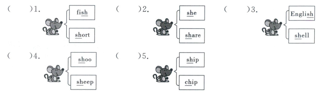 五、读一读,判断每组单词中画线部分读音是(T)否(F)一致。(5分)
