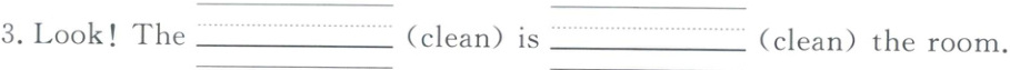 3. Look! The ______ (clean) is ______ (clean) the room.