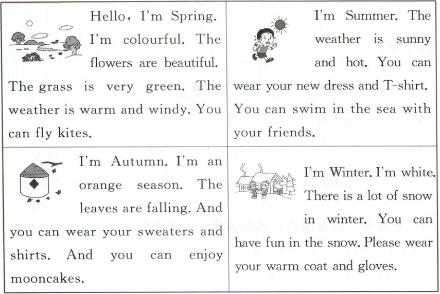 十一、季节家族的成员们正在介绍自己,请你阅读短文,根据短文内容选择正确的答案。(10分)