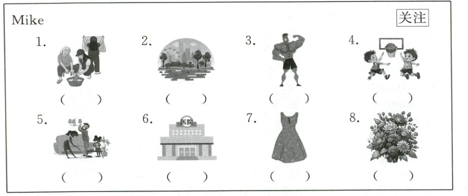 八、今天 Mike 将一些照片发到了自己的微博上,请你帮助 Mike 给这些照片配上正确的解说词。(16分)