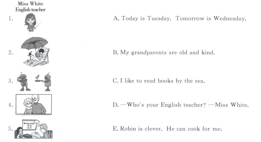 七、读一读,将图片与对应的句子或对话连线。(10 分)