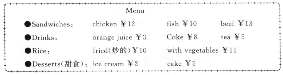 (milk/tea) for lunch at this restaurant.任务二:根据材料,判断正(T)误(F)。($6$分)
