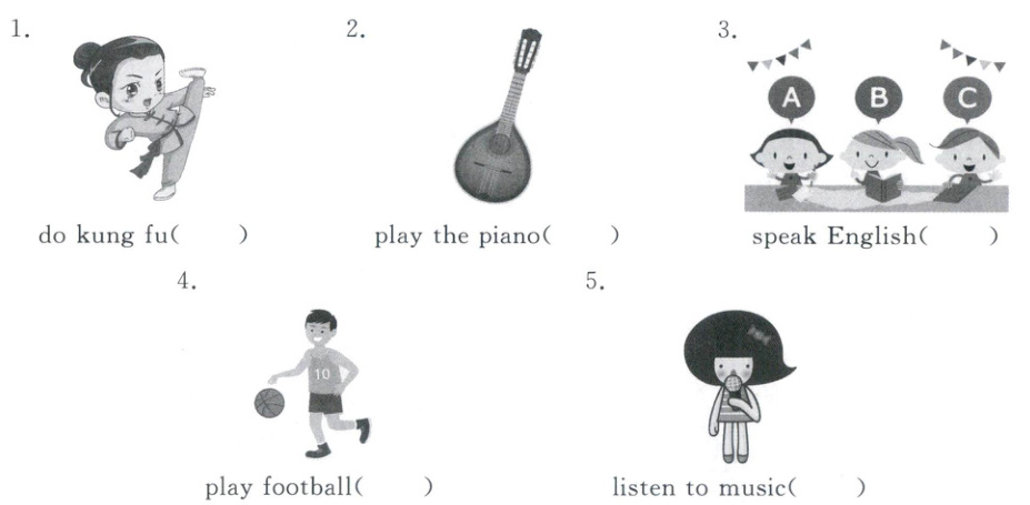 1. dance 2. do some kung fu 3. play the pipa 4. play basketball 5. play ping-pong
