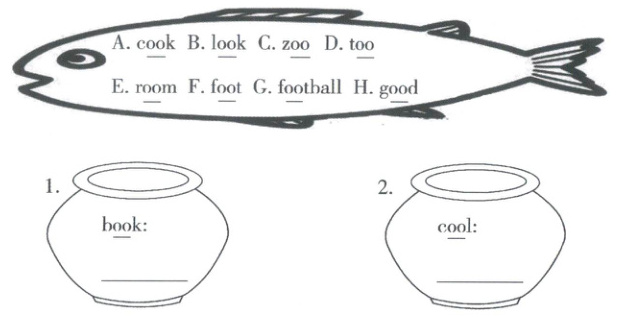 五、仔细读一读,帮画线部分读音相同的鱼宝宝回家吧。只填序号。(8分)