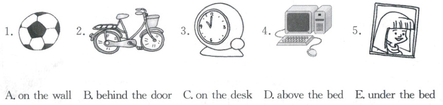 二、听一听,连一连,根据所听内容给下面的物品安排一个合适的位置。只读两遍哟!(10分)