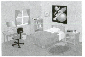 同学们,学校要进行“最美房间评选”,请根据图片帮 Tom 介绍自己的房间吧。
