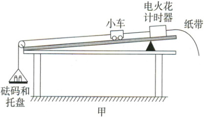 例 1 (2025·四川南充市期末)用图甲所示的装置可以完成“探究加速度与力、质量的关系”的实验。用总质量为 $ m $ 的托盘和砝码所形成的重物通过滑轮牵引小车,使它在长木板上运动,打点计时器在纸带上记录小车的运动情况。