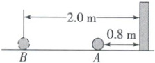 2. (平均速度和平均速率)(2025·湖南长沙市期中)如图,某同学从水平地面上的$A$点将足球正对着竖直墙壁向右贴地踢出,足球被墙壁反弹后运动至$B$点。已知$A$、$B点到竖直墙壁的距离分别为0.8m$、$2.0m$,从$A到B的时间为2s$,足球可视为质点,与墙壁的作用时间忽略不计,则足球从被踢出到运动至$B$点的平均速度大小和平均速率分别为(