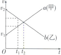4. (对$v - t$图像的理解)(多选)甲、乙两个物体在同一条直线上运动,它们的速度—时间图像分别如图中直线$a$、$b$所示,在$t_1$时刻(