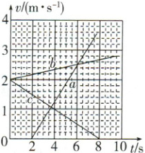 物体B:取t₁=0,v₁=2m/s;t₂=10s,v₂=3m/s,$a_{B}=\frac{v_{2}-v_{1}}{t_{2}-t_{1}}=\frac{3-2}{10-0}=0.10m/s^{2}$,方向与速度方向相同。