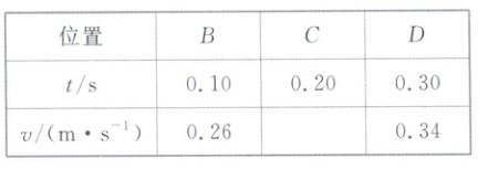(1)根据题中数据将表格填写完整。($ C $ 点的速度 $ v_{C}= $