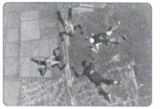 如图是特技跳伞运动员的空中造型图。当运动员们保持该造型向下落时,若其中某一位运动员以对面的运动员为参考系,则他自己的运动情况怎样?当他俯视大地时,看到大地迎面而来,他是以什么物体为参考系的?
