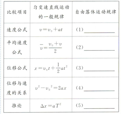 请根据匀变速直线运动的规律写出自由落体运动的规律。