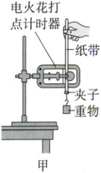 1. (实验:测定自由落体运动的加速度)如图甲所示为“用电火花打点计时器测当地重力加速度”的实验装置图(已知打点频率为 $ 50Hz $),则