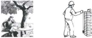 如图所示,树上的苹果会落向地面;建筑工地上工人常用重垂线来检测墙壁是否竖直。为什么树上的苹果总要落向地面?为什么使用重垂线能检测墙壁是否竖直呢?