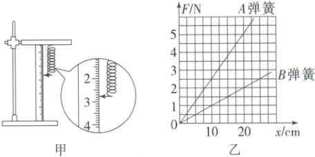 $cm$。(2)由图乙可算出$B$弹簧的劲度系数为