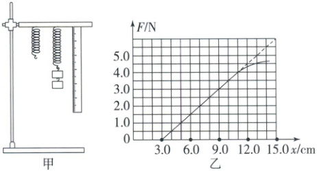 $N/cm$。(3)图乙中图线上端呈曲线,其原因是