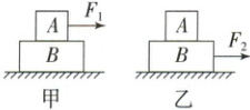 例 4 物体 $A$ 和 $B$ 叠放在一起置于水平地面上,现用大小为 $F_1$ 和 $F_2$ 的水平恒力分别作用于 $A$、$B$ 两物体,如图甲、乙所示。已知在水平恒力作用下,$A$、$B$ 两物体都保持相对静止,一起沿水平面做匀速直线运动,则下列结论正确的是(