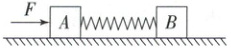 例 5 (多选)(2025·内蒙古呼和浩特市期中)如图所示,木块 $A$、$B$ 质量分别为 $3\ kg$ 和 $5\ kg$,它们与水平地面间的动摩擦因数均为 $0.2$,最大静摩擦力等于滑动摩擦力。初始状态 $A$、$B$ 间的轻弹簧被压缩了 $4\ cm$,作用在 $A$ 上的水平推力 $F = 12\ N$,系统静止不动。已知弹簧的劲度系数为 $200\ N/m$,重力加速度 $g$ 取 $10\ m/s^2$,$F$ 撤去瞬间,弹簧弹力不变。现撤去推力 $F$,则(