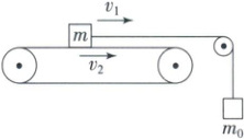 D.若 $v_1 = v_2$,且物块 $m$ 保持匀速运动,则 $f = m_0g$,方向向左