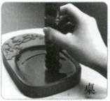 (2024·辽宁、吉林、黑龙江卷,T3)利用砚台将墨条研磨成墨汁时讲究“圆、缓、匀”,如图,在研磨过程中,砚台始终静止在水平桌面上。当墨条的速度方向水平向左时,(