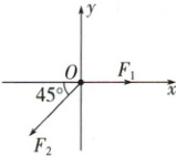 例6 如图所示,一个物体在平面直角坐标系xOy的坐标原点,只受到F₁和F₂的作用,$F₁= 10\sqrt{2}N,$F₂= 20N,则物体所受的合力(