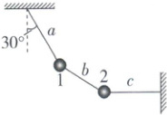 (1) 求细线 $ a $、$ c $ 分别对小球 $ 1 $ 和 $ 2 $ 的拉力大小。
