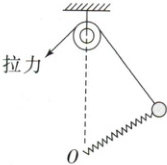 3. (相似三角形法的应用)(多选)(2025·广东广州月考)如图所示,一轻弹簧一端套在固定的光滑水平轴 $ O $ 上,另一端固定在质量为 $ m $ 的小球上,在 $ O $ 点的正上方有一光滑定滑轮,细绳通过滑轮与小球连接,在细绳的另一端用适当大小的力拉住,使小球处于静止状态。若缓慢拉动细绳(始终保持小球平衡)直到小球刚到滑轮的正下方过程中,下列说法正确的是