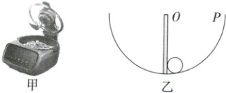 1. (解析法的应用)(2025·江苏扬州市期中)如图甲所示,自动炒菜机的炒菜原理可简化为如图乙所示的模型,内壁光滑的半球形容器开口向上固定在水平面上,一个小球(可视为质点)放在容器的底部,竖直光滑挡板与其接触,挡板的上端刚好与圆心 $ O $ 重合,现让挡板绕 $ O $ 点缓慢转动,使小球到达 $ P $ 点。下列说法正确的是
