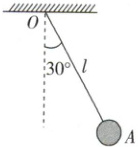 4. (临界极值问题)如图所示,用一根长为 $ l $ 的细绳一端固定在 $ O $ 点,另一端悬挂质量为 $ m $ 的小球 $ A $,为使小球 $ A $ 处于静止状态时细绳与竖直方向成 $ 30^{\circ} $ 角绷紧,需要施加的最小外力是