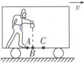例 6 在匀速行驶的火车车厢内,有一人从 B 点正上方相对于车厢静止释放一个小球,不计空气阻力,则小球(