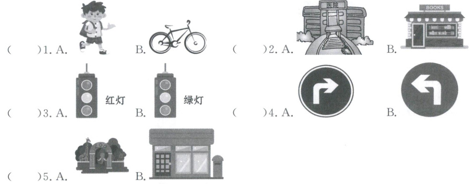 二、听一听,选出与所听内容相符的图片。只读两遍哟!(5 分)