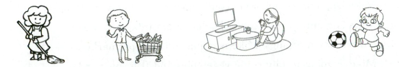 My mother is going to clean the room. My father is going to the supermarket. He is going there by car. And my sister is going to watch TV at home. What about me? Haha! I am going to play football. I like it very much.