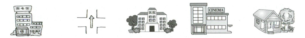 Hello! I'm John. Today I want to visit my grandma. She's ill. First(首先), I go to the library. Go straight at the crossing and turn right at the cinema, then I can see a hospital. It's next to my grandma's house.
