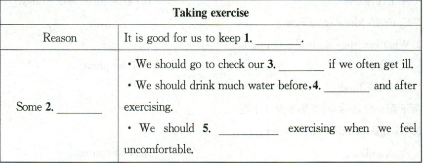 Ⅴ. 听短文,写出表格中所缺的单词,每空一词。短文读两遍。