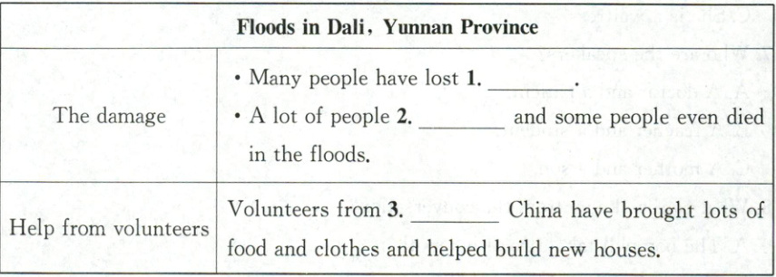 Ⅳ. 听短文,选择正确答案,完成信息记录表。短文读两遍。