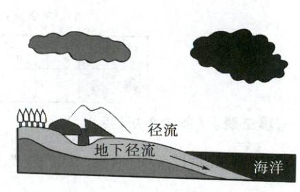 24. 降水是地球表面和地下所有淡水的来源,水循环更新了地球上的可用淡水资源。请在图中用箭头表示出水在自然界里的循环过程,并思考如果地球上的水停止了循环,会产生什么影响?