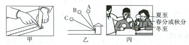 日的太阳高度。(均选填“春分”“夏至”“秋分”或“冬至”)。(3)图丙中同学手里的手电筒代表的是