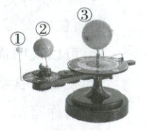 (1)用三球仪模拟月球、地球和太阳的相对运动。如图所示,①号小球模拟的是