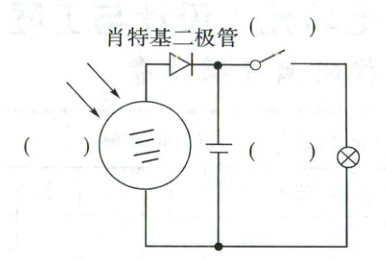 31. 如图是简易光伏发电系统的示意图,请在括号内填入对应的部件名称。